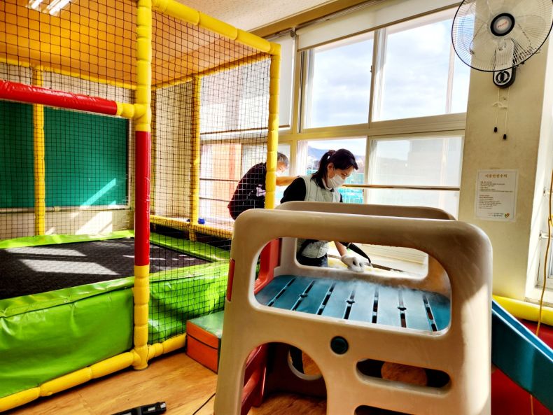 독산초특수반 실내놀이터 시설물을 스팀세척살균소독 하였습니다.