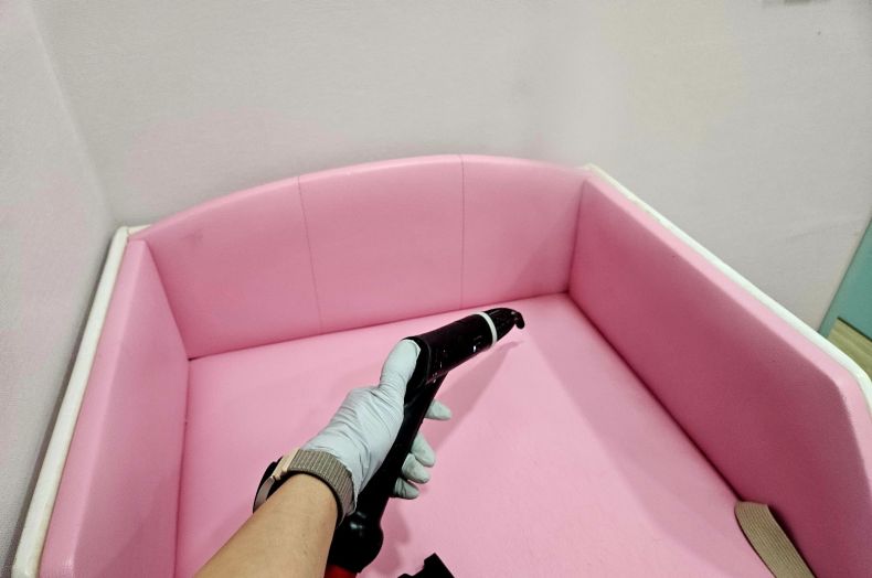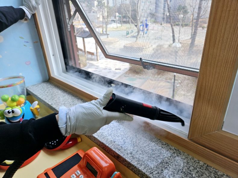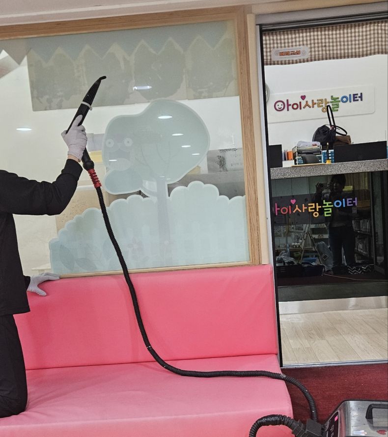 장난감과 시설물을 스팀세척살균소독 하였습니다.