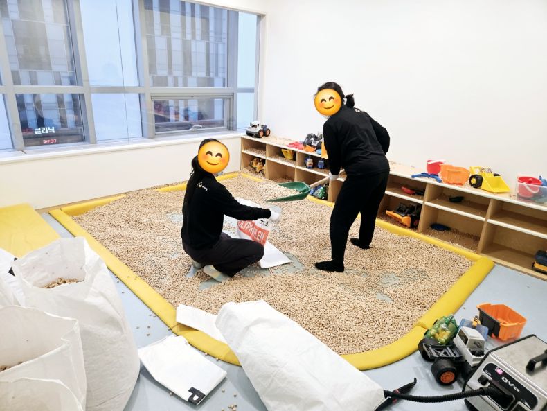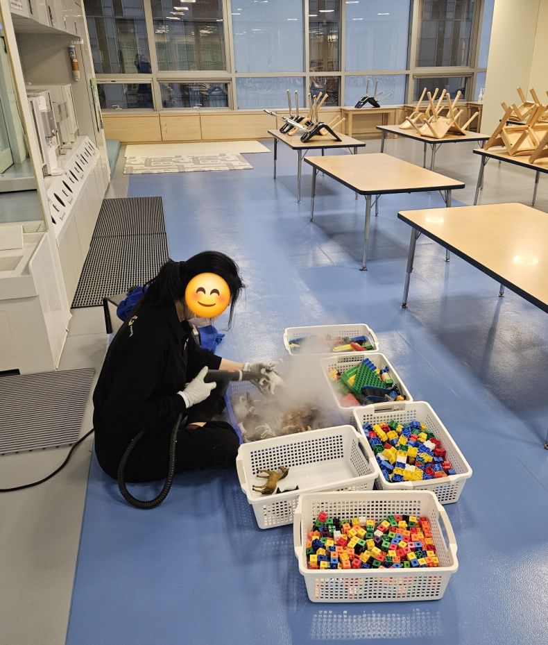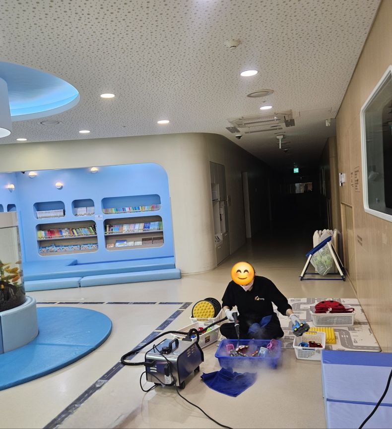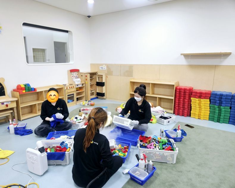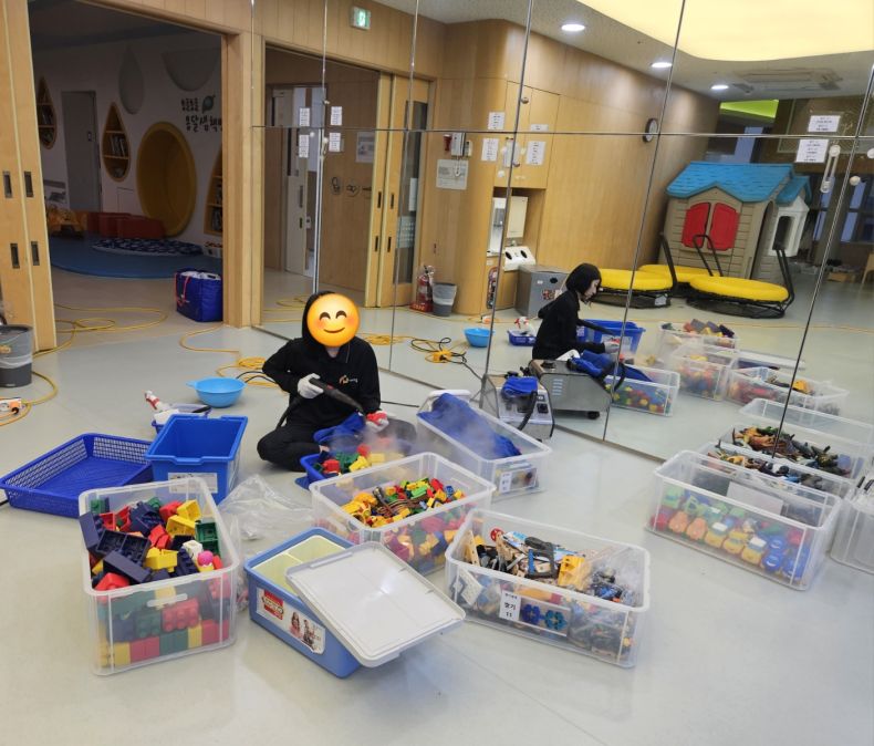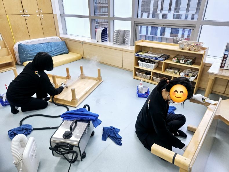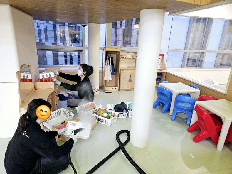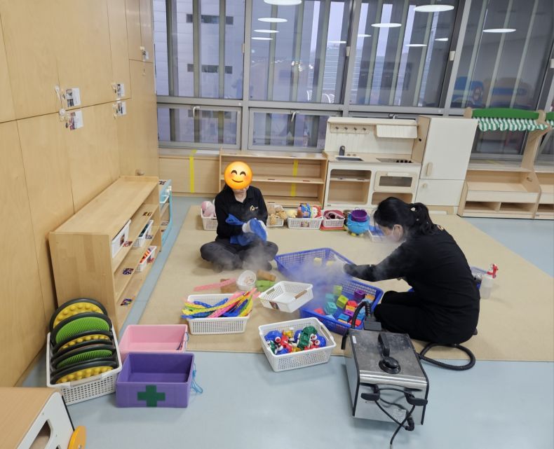 책걸상과 교구장, 교구재를 2일차로 스팀세척살균소독 완료하였습니다.