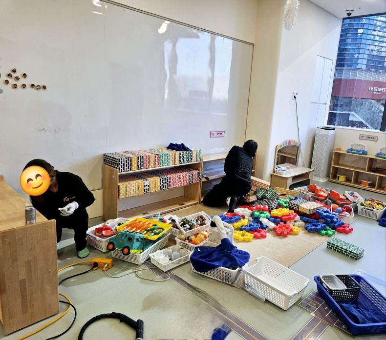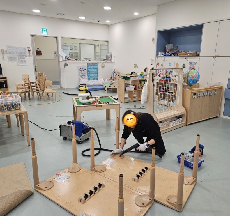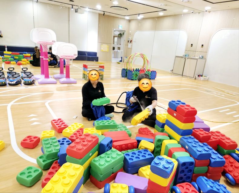 3개의 유희실 승용완구 외 매트등을 2일차로 스팀세척살균소독 완료하였습니다.