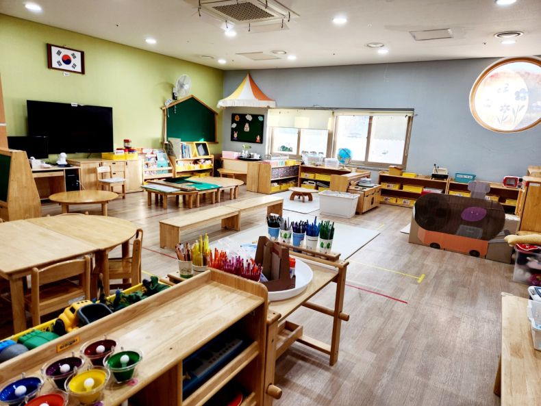 위례푸른초병설유치원 3개실의 책걸상과 교구장, 교구재를