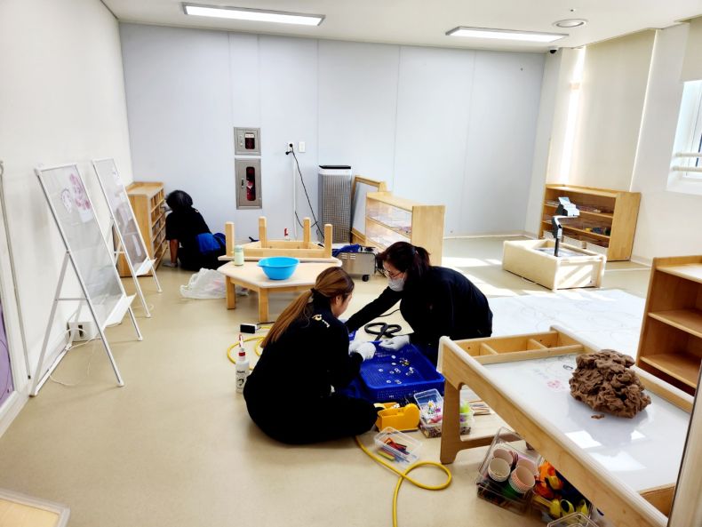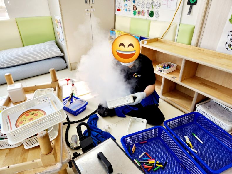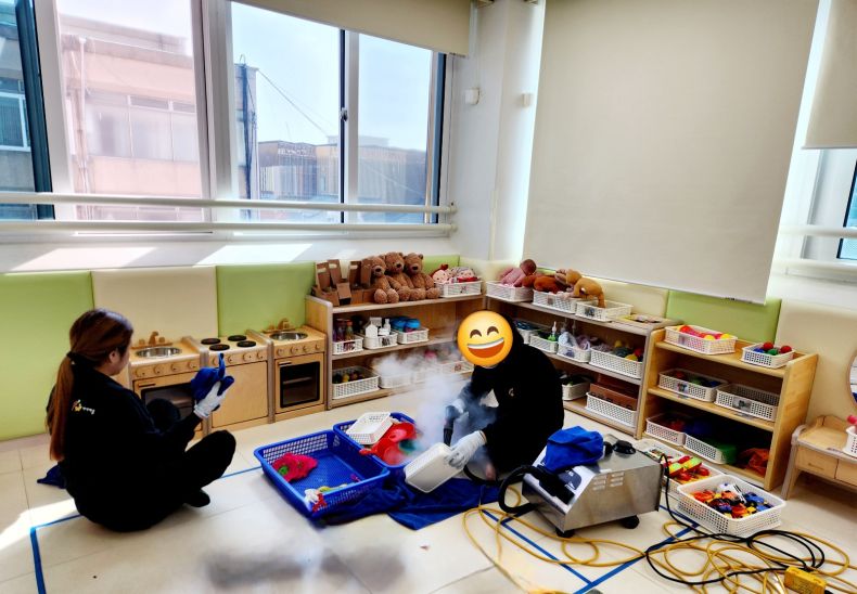 책걸상과 교구장, 교구재를 스팀세척살균소독 하였습니다.