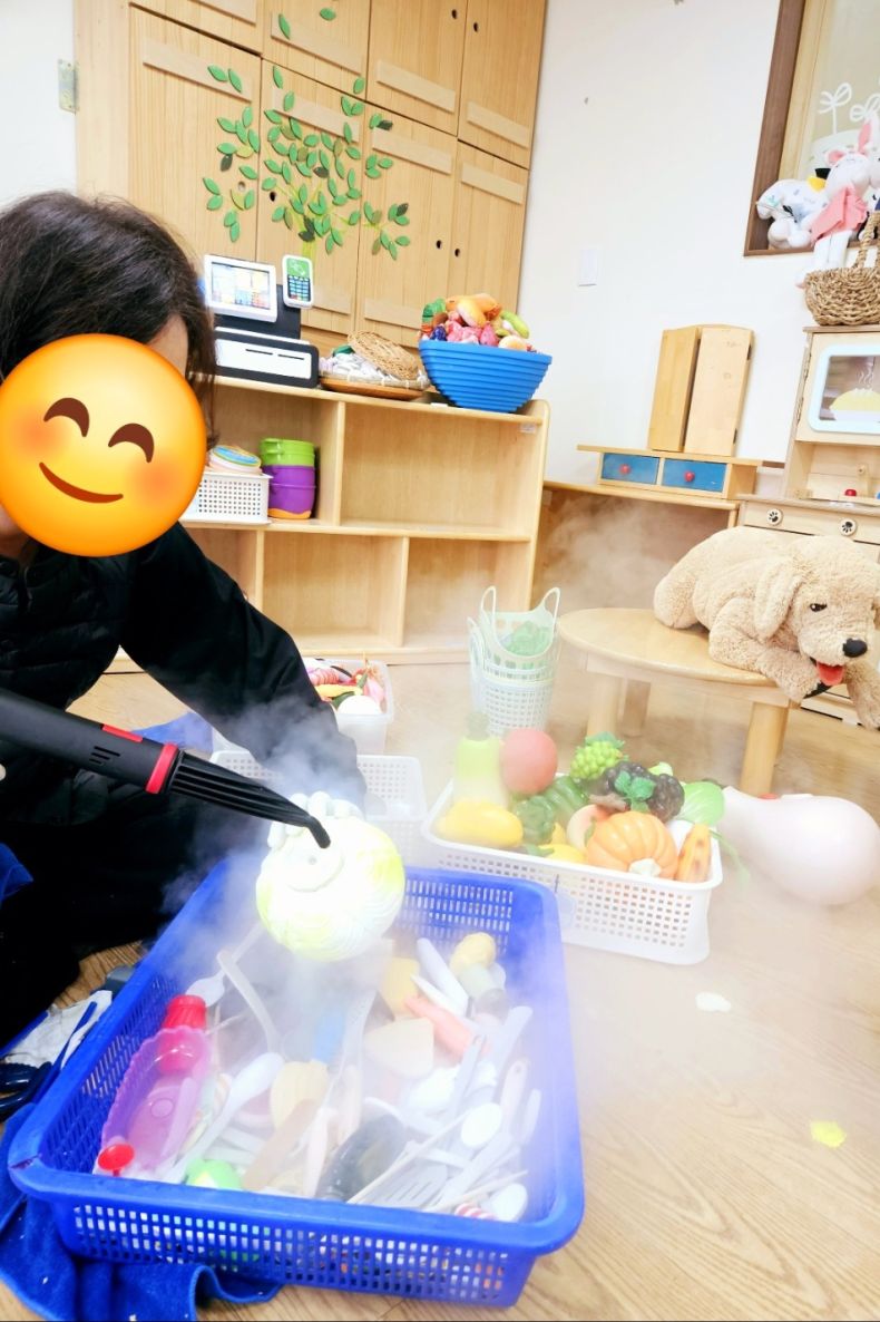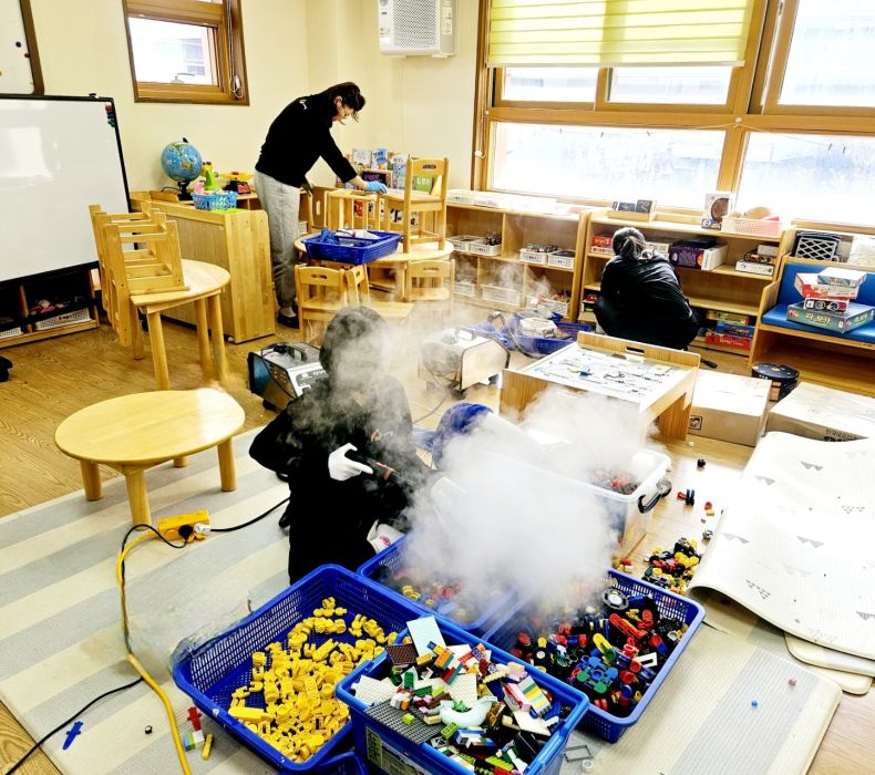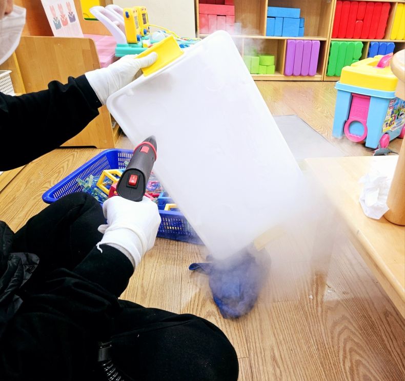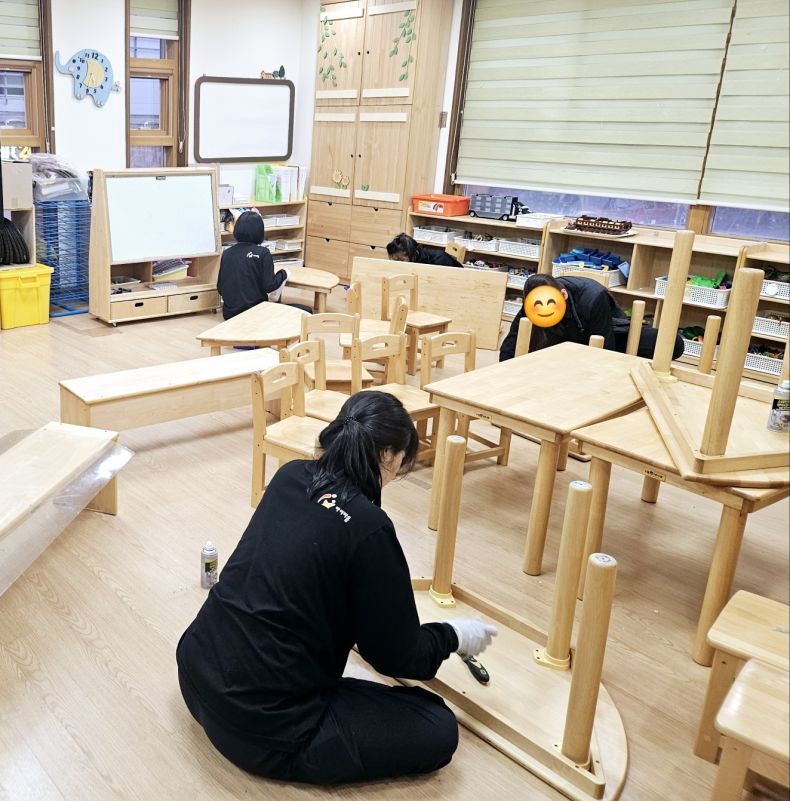 책걸상과 교구장, 교구재를 스팀세척살균소독 하였습니다.
