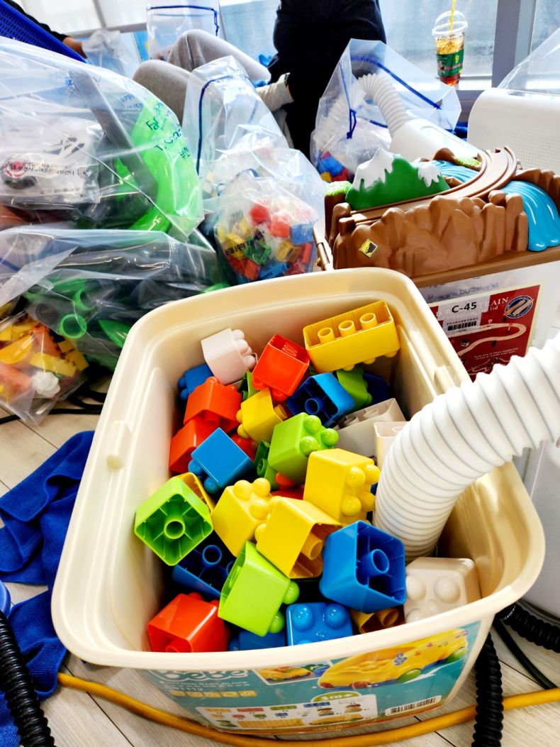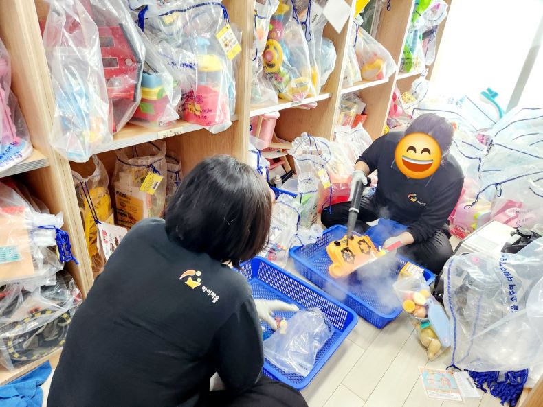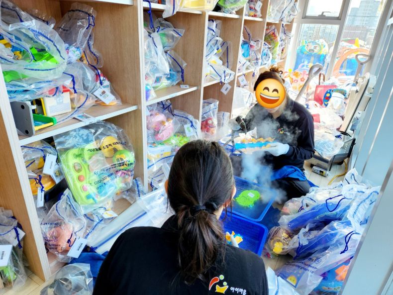 장난감을2일차로 스팀세척살균소독 하였습니다.