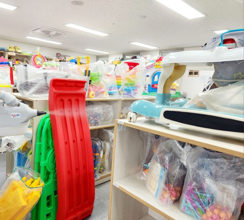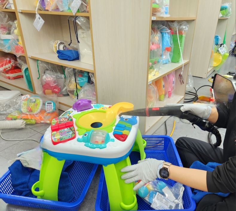 장난감을 스팀세척살균소독 하였습니다.