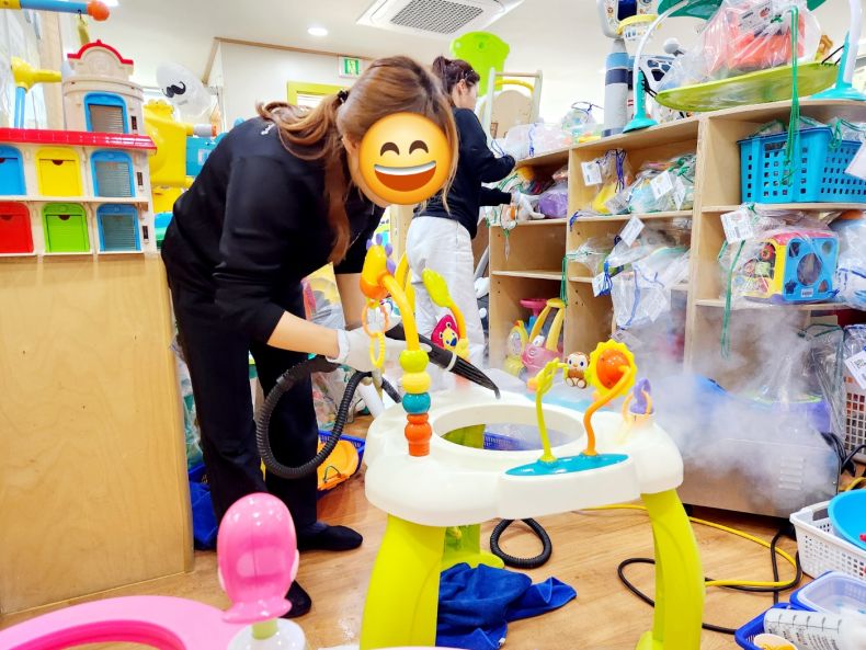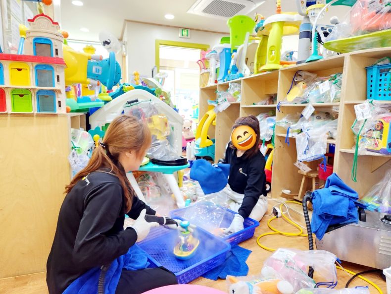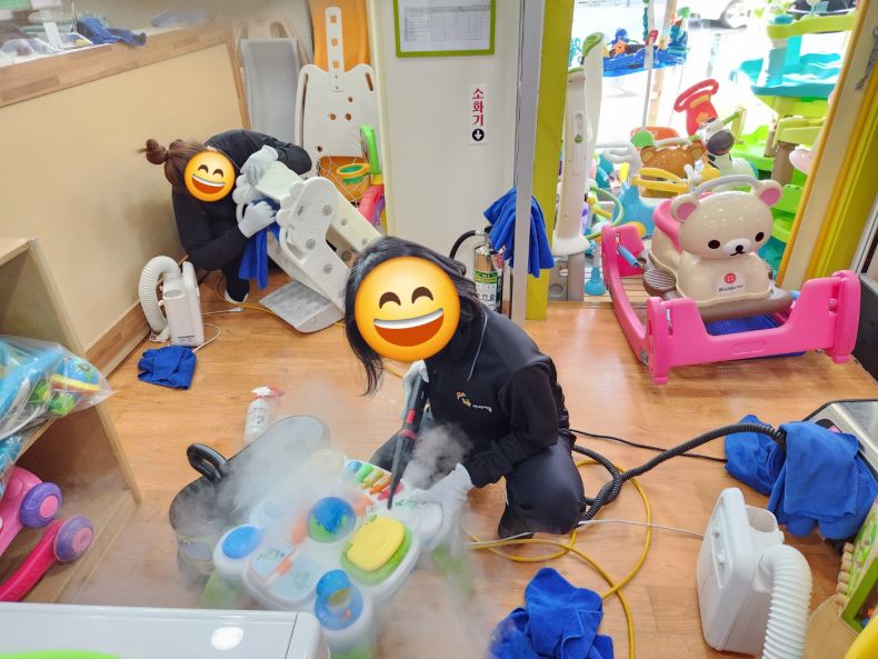 장난감을 스팀세척살균소독 하였습니다.