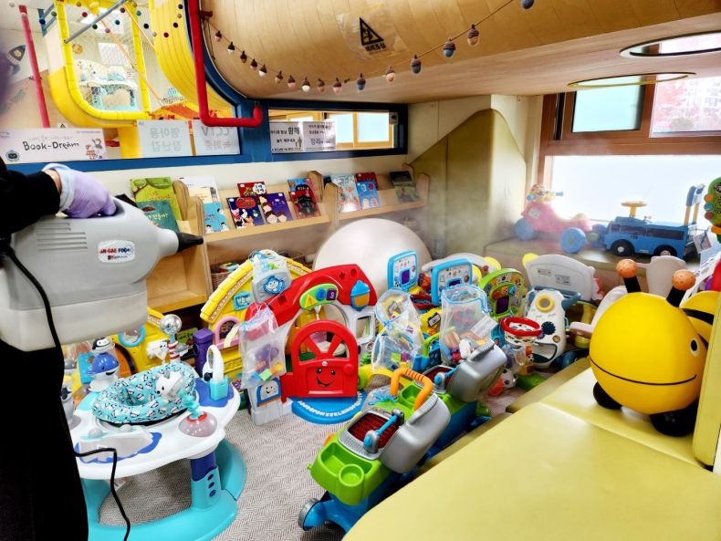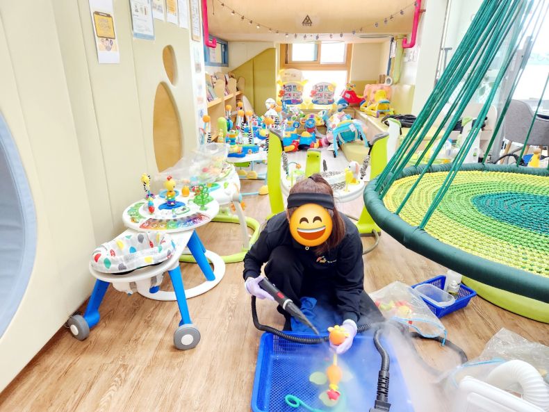 장난감을 스팀세척살균소독 하였습니다.