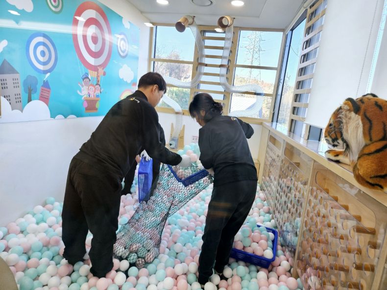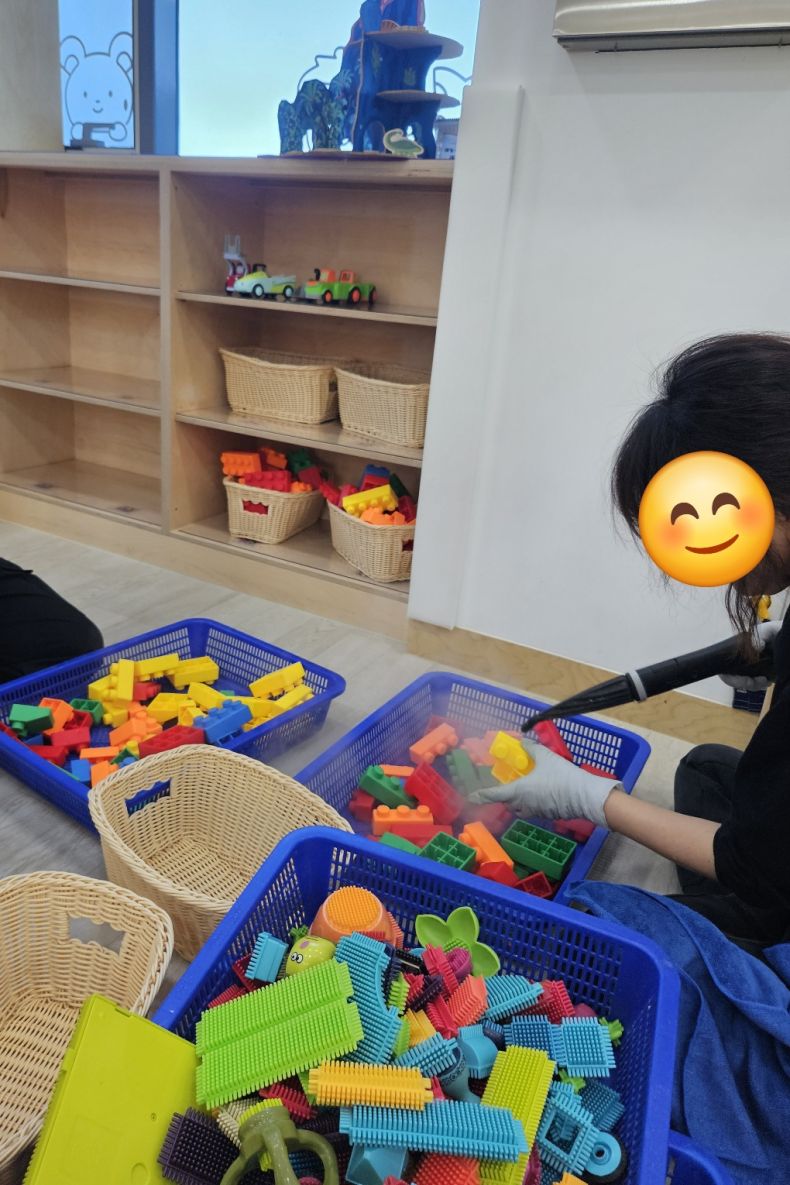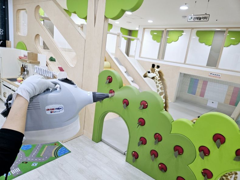 장난감과 시설물을 스팀세척살균소독 하였습니다.