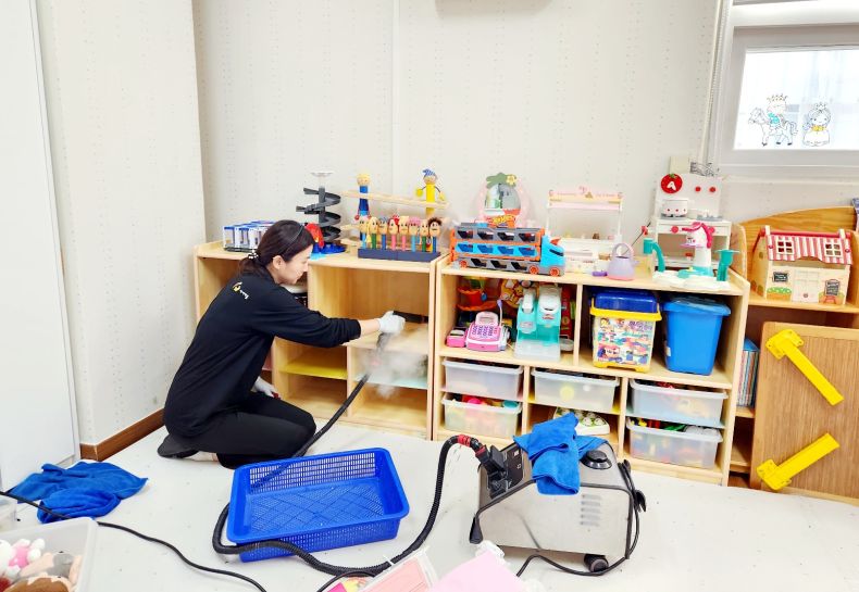 교구와 장난감을 스팀세척살균소독 하였습니다.