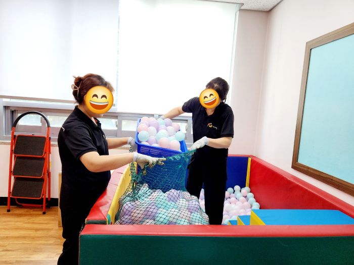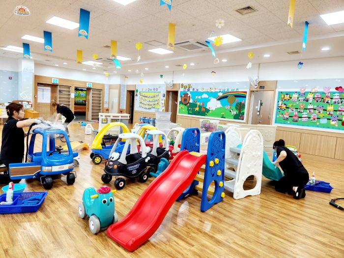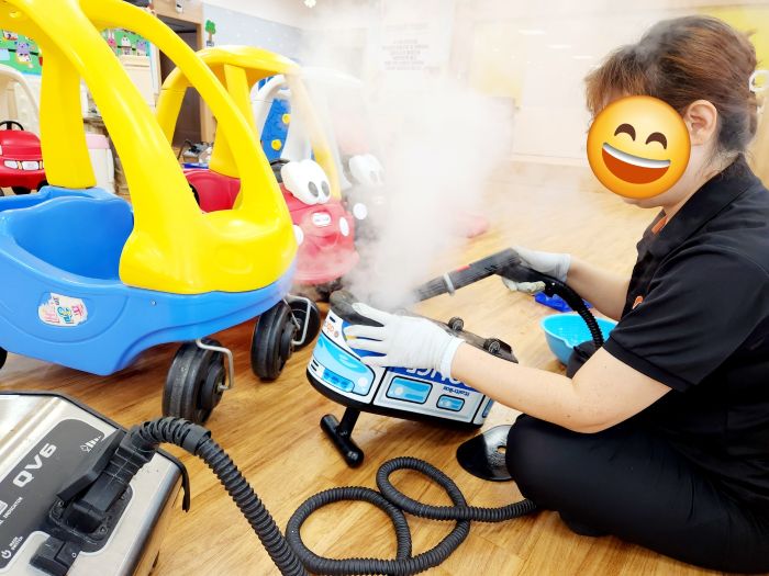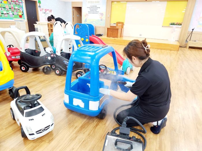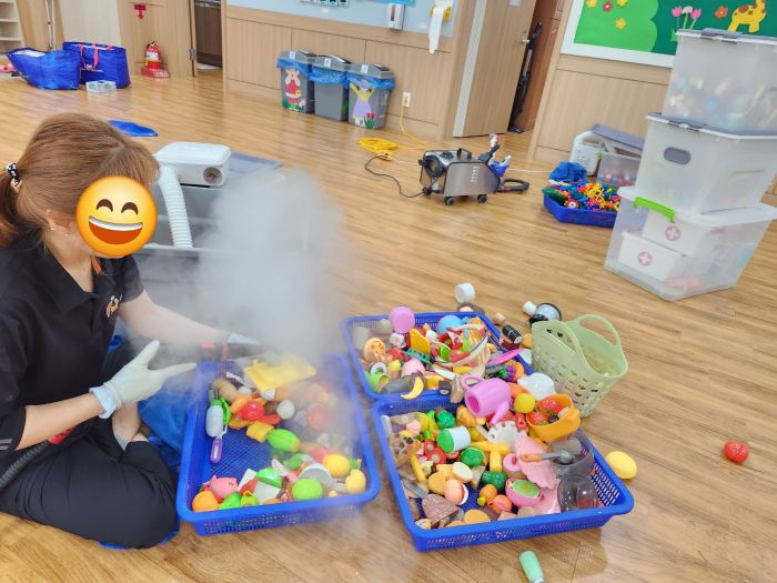 천안중앙교회 유아부실 장난감을 스팀세척살균소독 하였습니다.