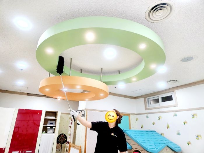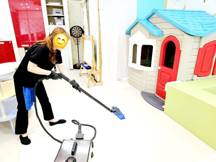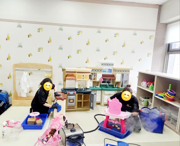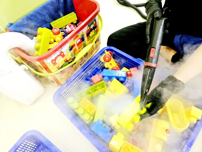장난감과 시설물을 스팀세척살균소독 하였습니다.