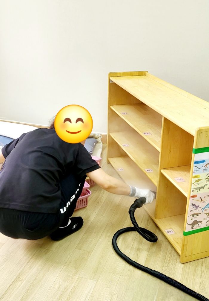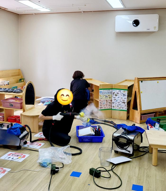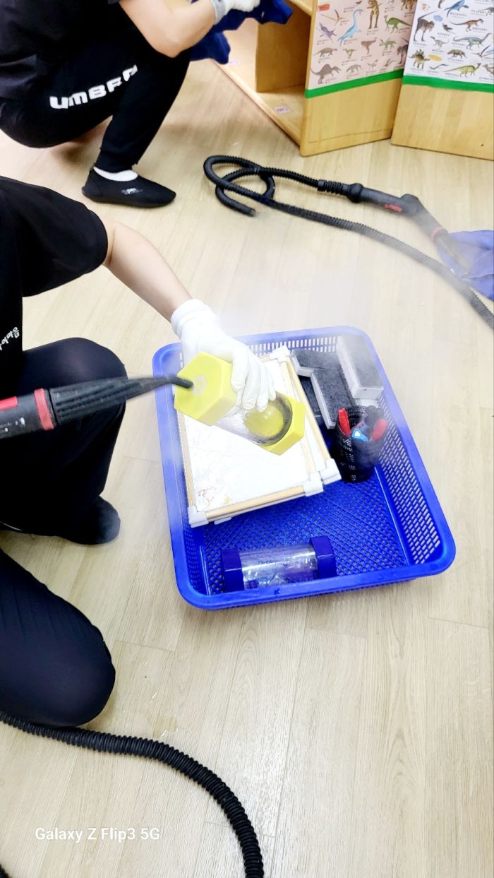 책걸상과 교구장, 교구재를 스팀세척살균소독 하였습니다.