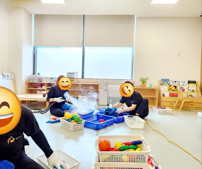 한섬아이어린이집 장난감을 스팀세척살균소독 하였습니다.