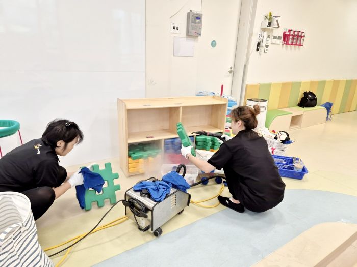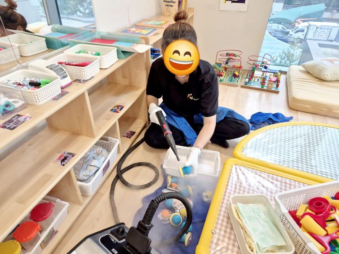책걸상과 교구장, 교구재를 스팀세척살균소독 하였습니다.