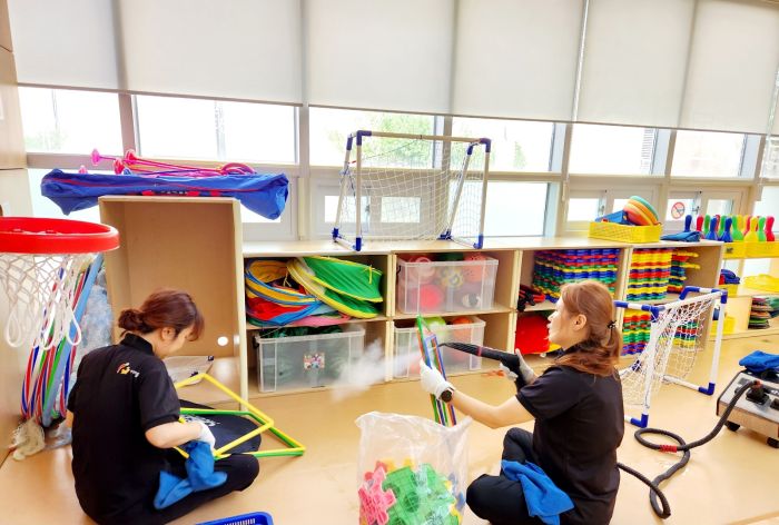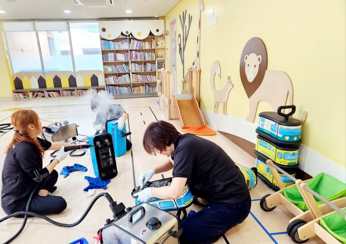 책걸상과 교구장, 교구재를 스팀세척살균소독 하였습니다.