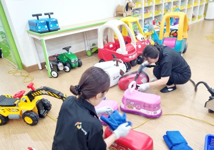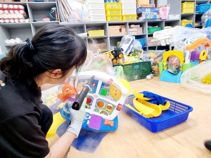 장난감을 스팀세척살균소독 하였습니다.