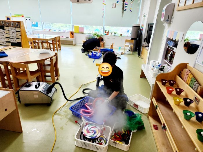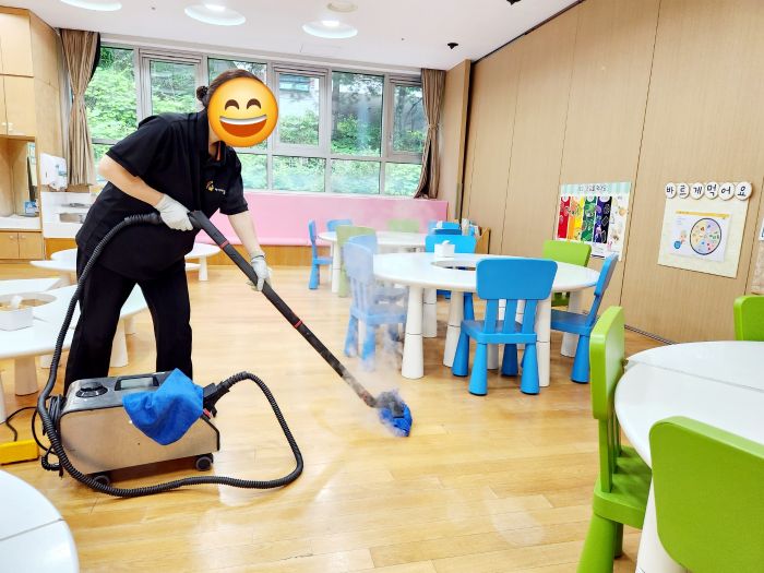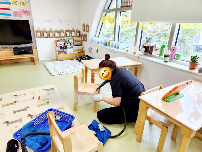 책걸상과 교구장, 교구재를 스팀세척살균소독 하였습니다.