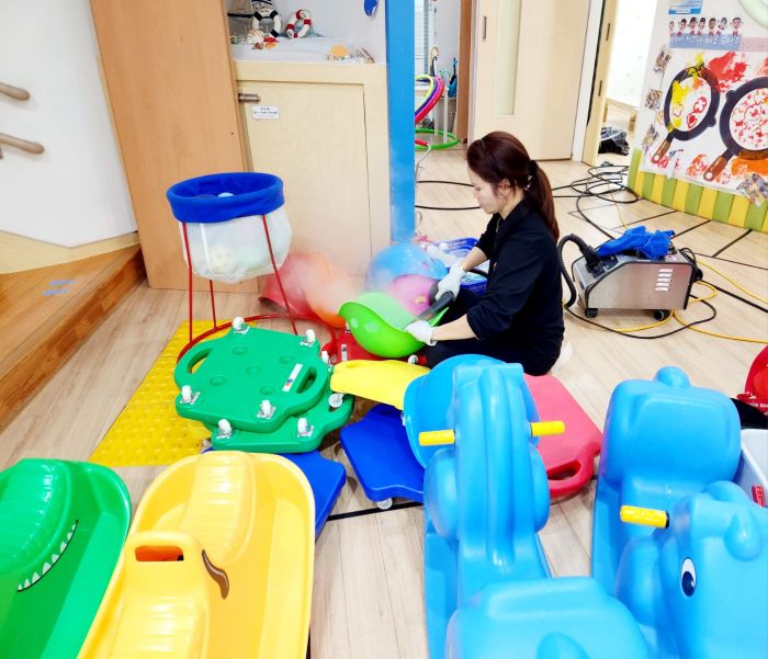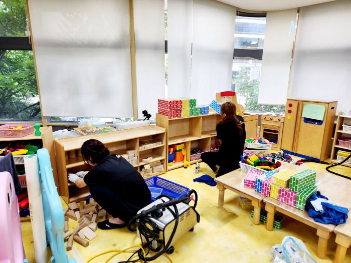 책걸상과 교구장, 교구재를 스팀세척살균소독 하였읍니다.