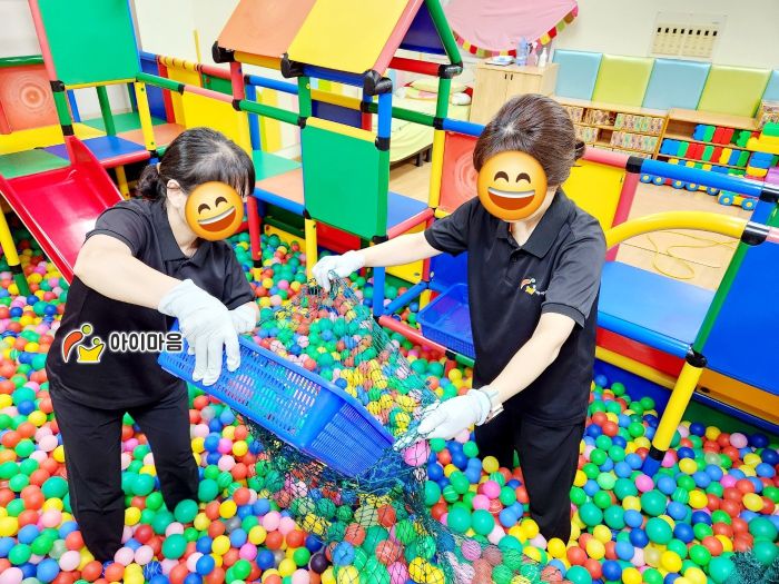 선장초등학교병설유치원 볼풀장과 볼풀을 세척소독 하였습니다.