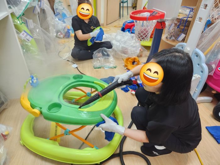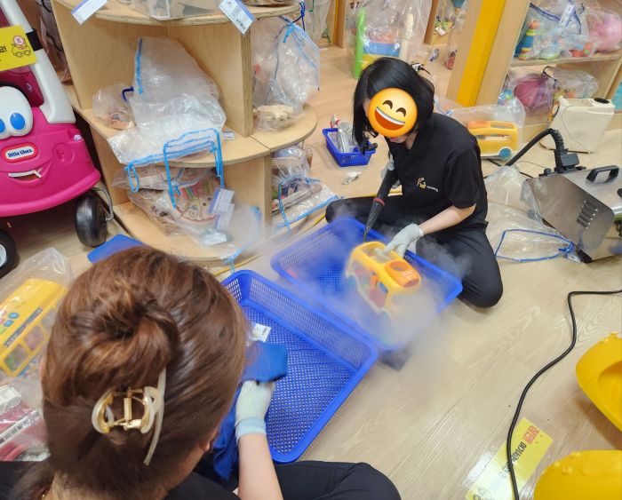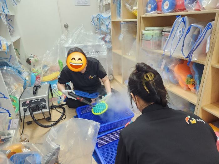 장난감을 스팀세척살균소독 하였습니다.