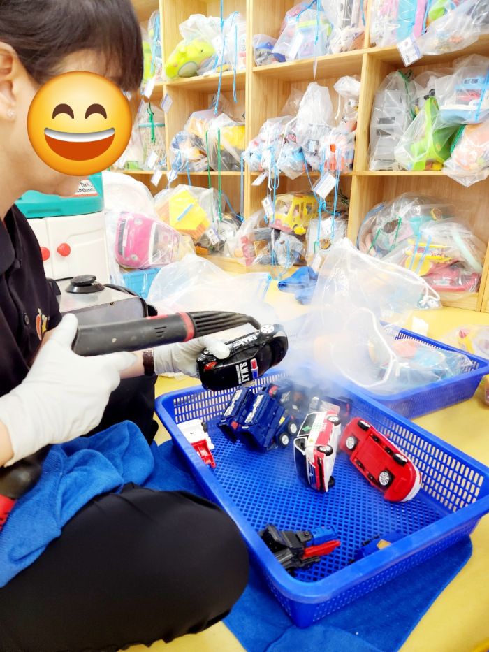 장난감을 스팀세척살균소독 하였습니다.