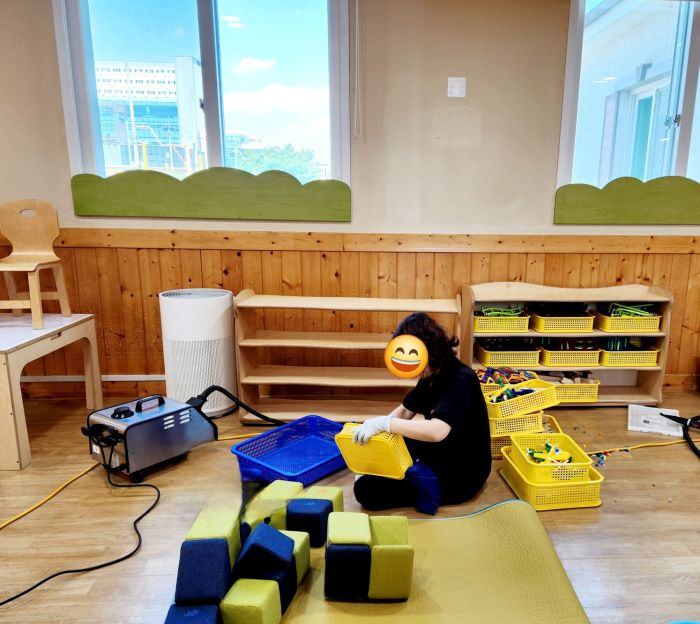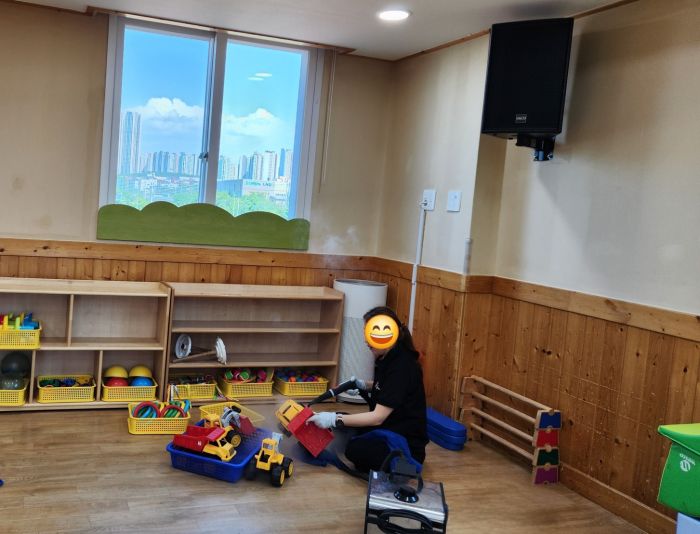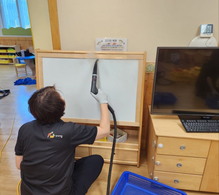 책걸상과 교구장, 교구재를 스팀세척살균소독 하였습니다.