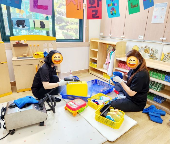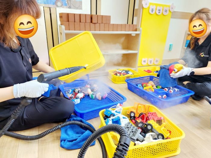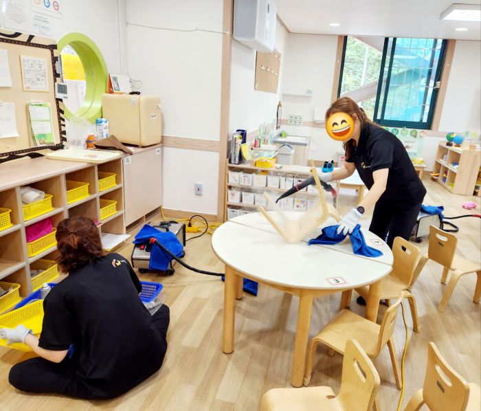 책걸상 교구장, 교구재를 스팀세척살균소독 하였습니다.