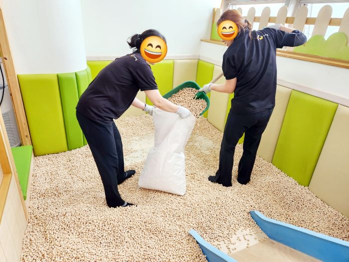 편백나무칩놀이터 칩과 장을 세척살균소독 하였습니다.