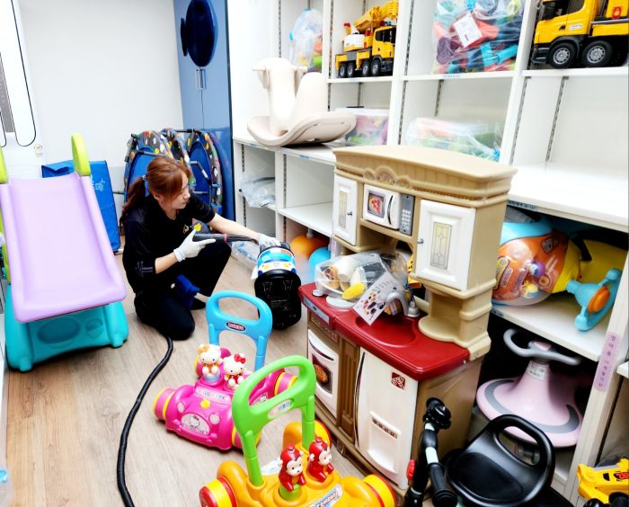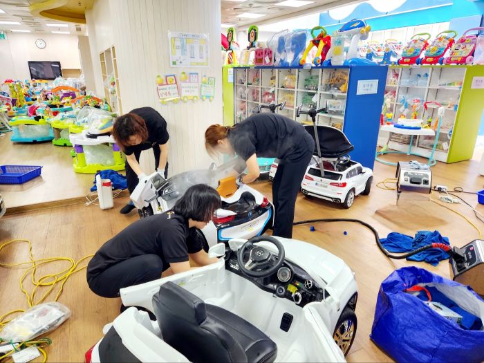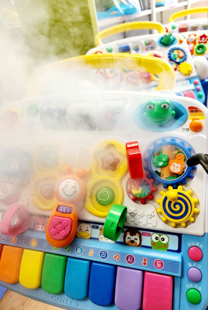장난감을 스팀세척살균소독 하였습니다.