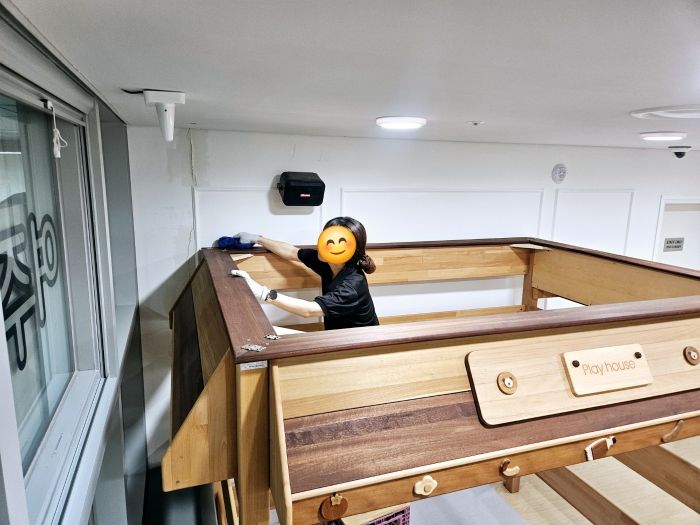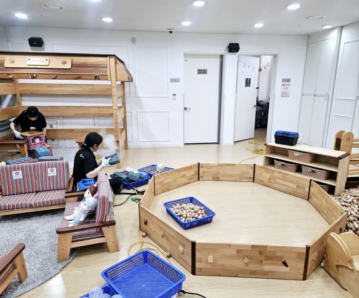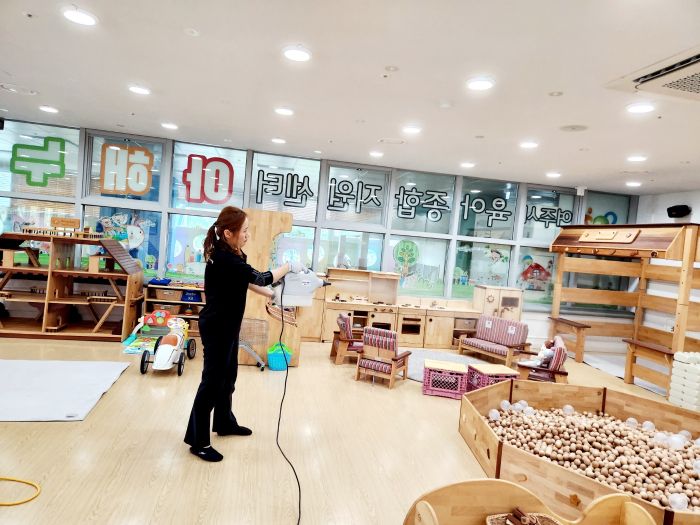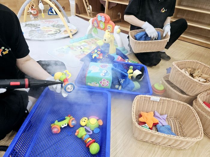 장난감과 시설물을 스팀세척살균소독 하였습니다.