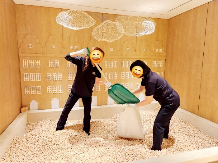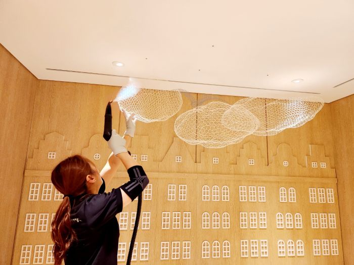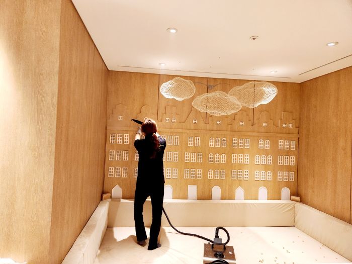 호텔신라 키즈룸 편백나무놀이터 소독을 하였습니다.