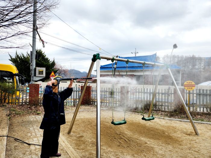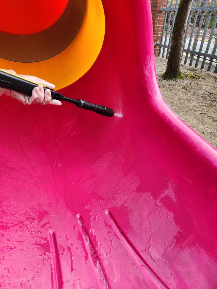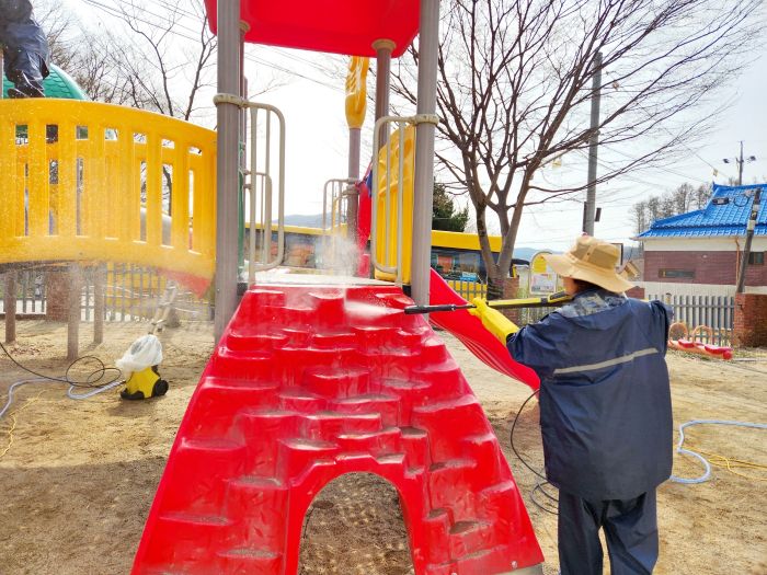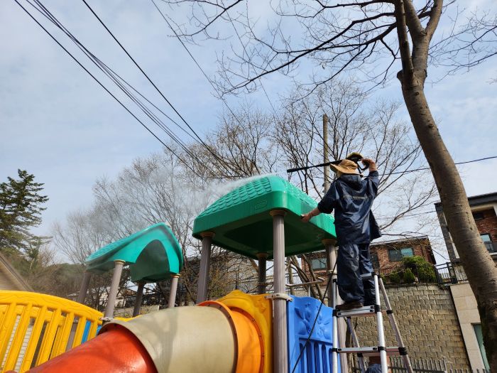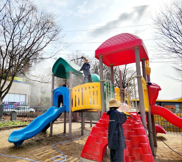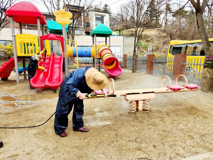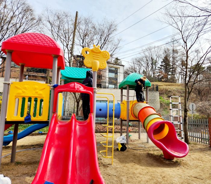 용인제일초병설유치원 바깥놀이터를 세척작업하였습니다.