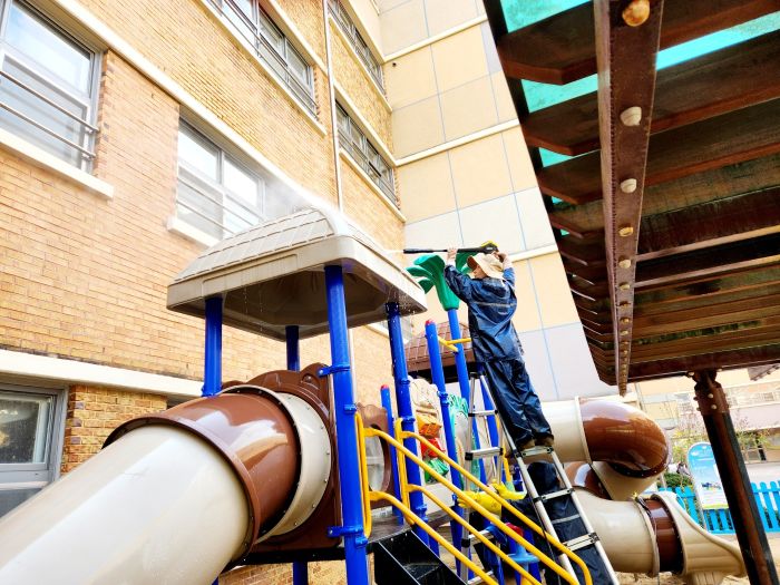석우초병설유치원 바깥놀이터 세척작업을 하였습니다.