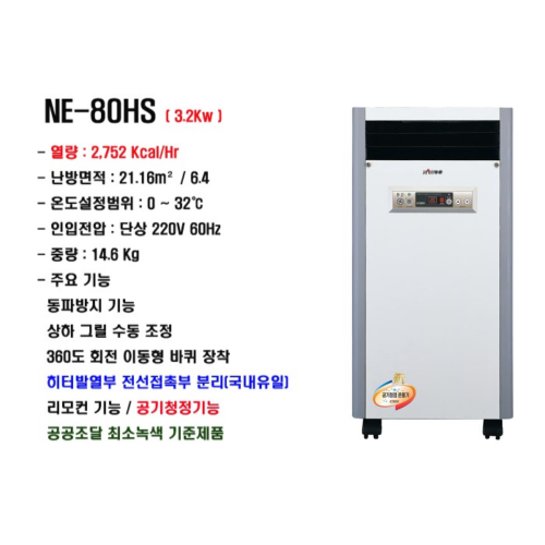 ★이동식전기온풍기★[6.4평형 / 3.2Kw] 무상서비스 3년[공기청정기능]