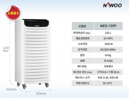 NED-155P 펌프내장형 무상서비스(2년)150L/일)